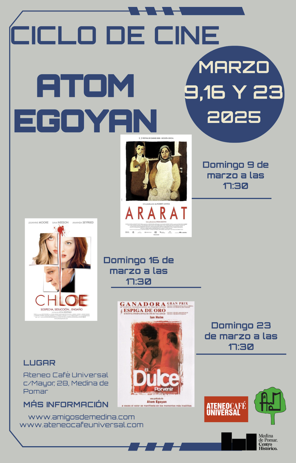Los días 6, 13 y 20 de marzo a las 17:30, en la sede del Ateneo, hemos organizado, en colaboración con el Ateneo Café Universal, un ciclo de cine-coloquio sobre el director Atom Egoyam.