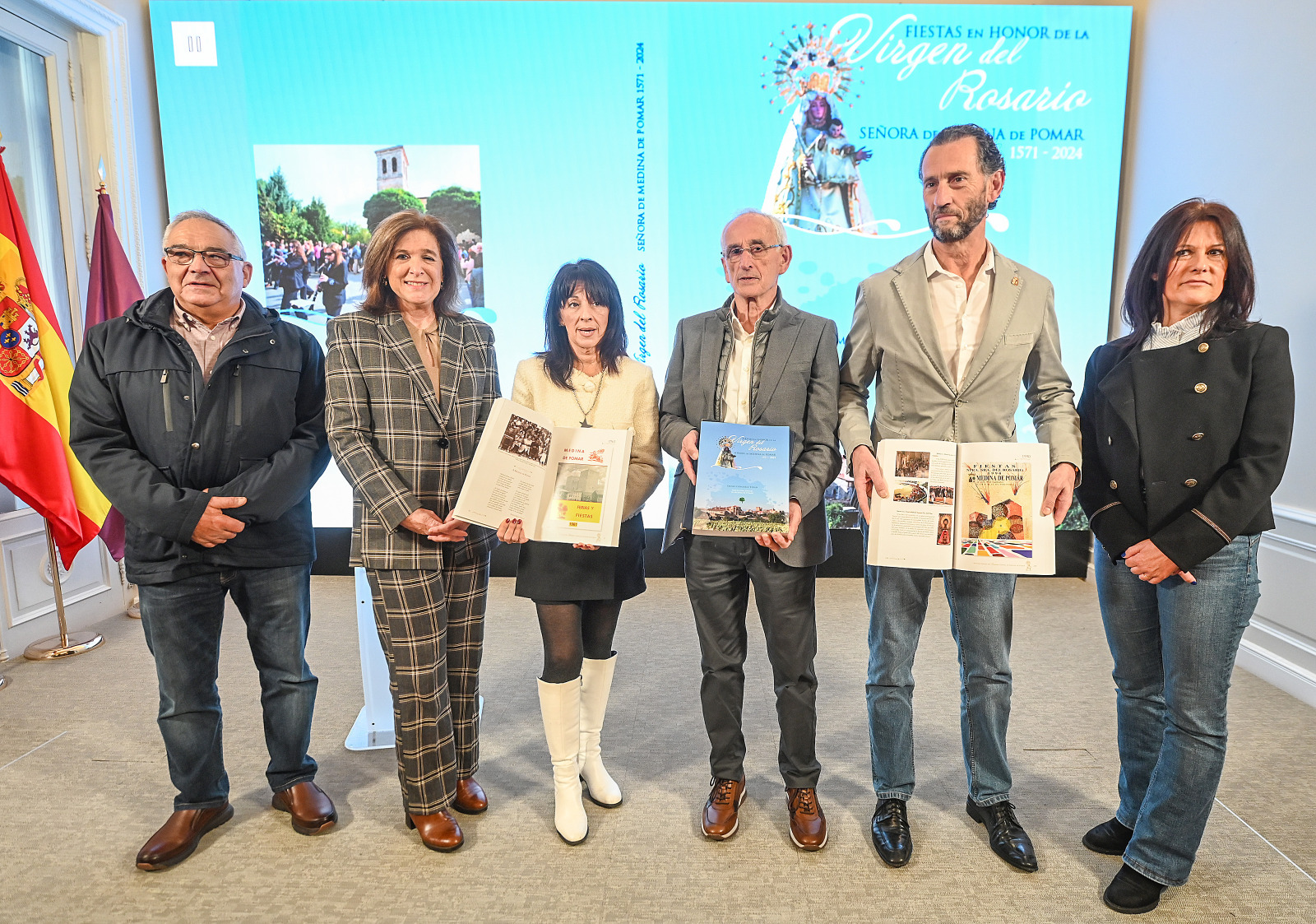 Este título se abre con los prólogos del presidente de la Diputación, del arzobispo y del vicario episcopal territorial, en los que ponen en valor las tradiciones y los contenidos culturales y religiosos que ofrecen Medina de Pomar y las fiestas del Rosario e invitan a mantener vivo el espíritu medinés y estar más próximos a la Patrona.